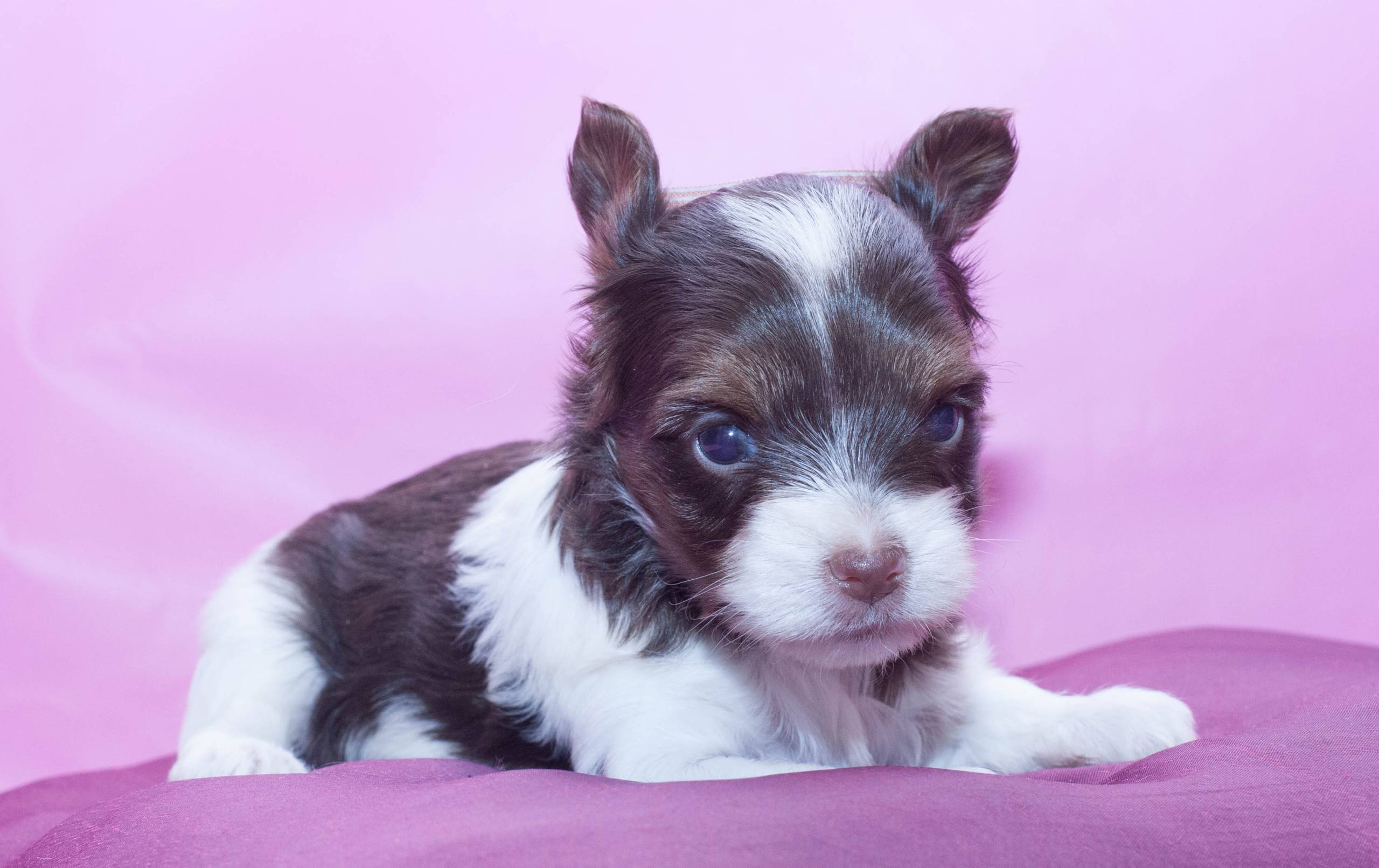 Биро-йоркширский терьер (Biro Yorkshire Terrier)- пока еще редчайшая порода не только в России, но и во всем мире. Экзотичность этой породы связана с ее уникальным окрасом: на белом фоне расположены шоколадные пятна, а на голове в бело-шоколадной масти заметен золотой оттенок.