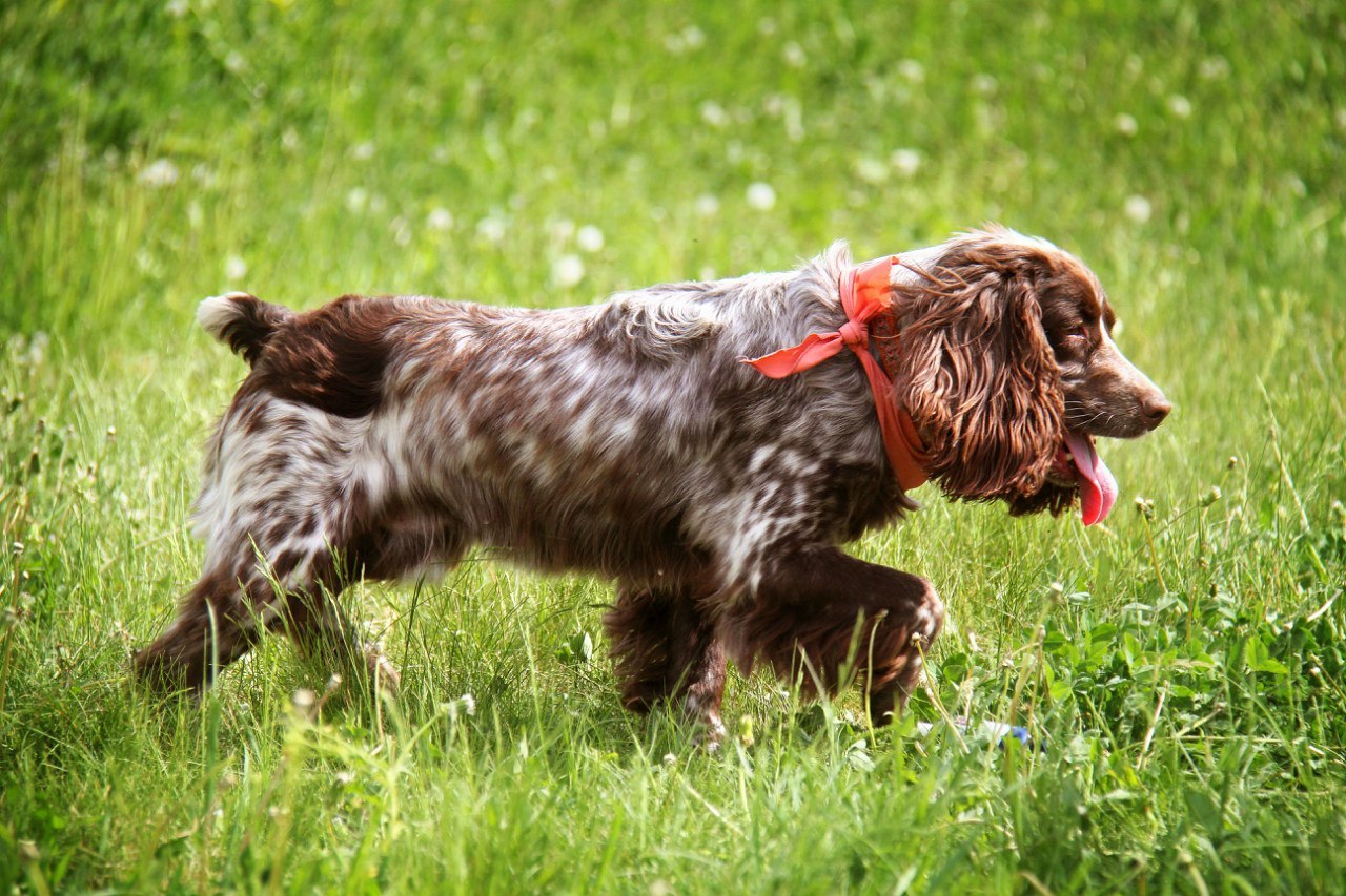 Русский спаниель – охотничья разновидность, которая появилась в результате скрещивания английских спрингера и кокера. Еще в девятнадцатом веке наши соотечественники заинтересовались зверями из Соединенного Королевства, но раньше они мало подходили для ловли птиц. Это сподвигло энтузиастов выбирать самых долгоногих и эмоциональных четвероногих, что привело к появлению такой новинки.